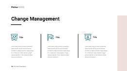 Change management processes in an investor pitch deck detail how a company handles organizational changes, including technology upgrades, strategy pivots, or structural adjustments. This section should explain the methodologies and systems used to ensure smooth transitions and effective adaptation to new processes, roles, or business models.